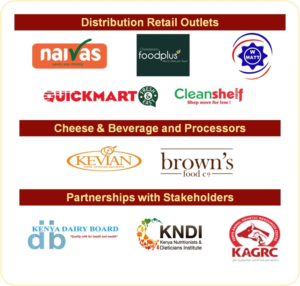 County Governments of Embu & Tharaka Nithi, Ministry of Agriculture & livestock development, KAGRIC, Kenya Dairy Board, Meru highlands diaries limited, KEBS